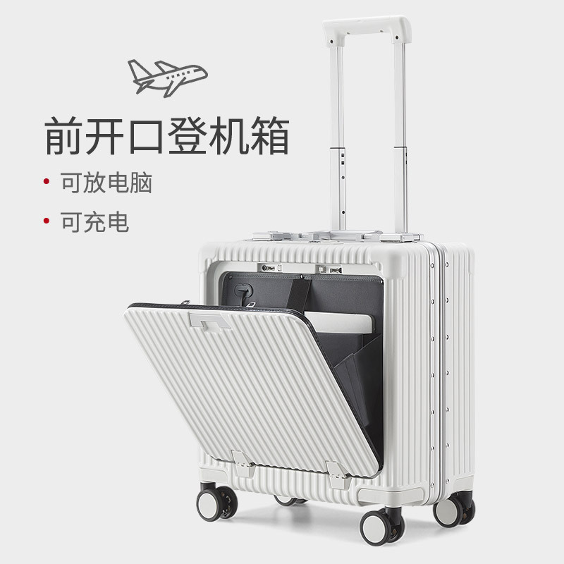 18寸登机箱多功能小行李箱前开口铝框密码...